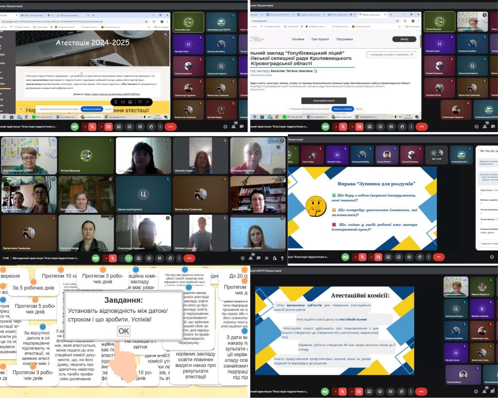 18 вересня 2025 року на базі комунальної установи «Центр професійного розвитку педагогічних працівників Компаніївської селищної ради Кропивницького району Кіровоградської області» відбувся методичний практикум “Атестація педагогічних працівників у 2025/2026 навчальному році: алгоритм дій заступника директора”.