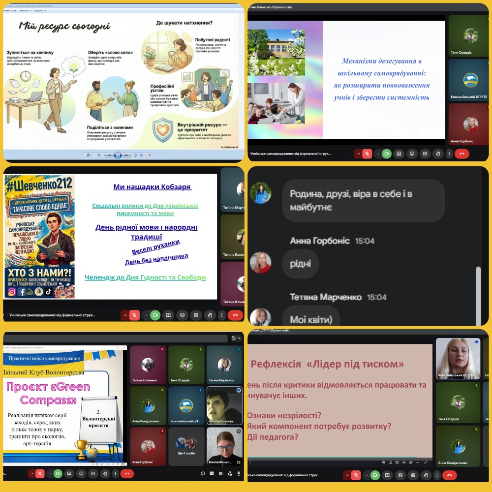 З метою забезпечення неперервного професійного розвитку з реалізації управлінського супроводу діяльнісного підходу задля сталості імплементації реформи «Нова українська школа» в умовах воєнного та повоєнного часу 20.12.2024 керівники та заступники закладів загальної середньої освіти Компаніївської територіальної громади долучилися до тренінгу «Діяльнісний підхід у загальній середній освіті в реаліях сьогодення» за напрямом «Розвиток управлінських компетентностей керівних кадрів закладів загальної середньої освіти (директорів, заступників директорів, керівників філій)», який ініційований The LEGO Foundation й проведений регіональним тренером Людмилою КІРІШКО, методистом обласного навчально-методичного центру освітнього менеджменту та координації методичних формувань КЗ “Кіровоградський обласний інститут післядипломної педагогічної освіти імені Василя Сухомлинського”.